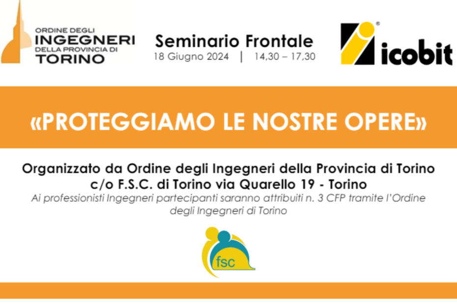 EVENTI ICOBIT – SEMINARIO FRONTALE – 18 GIUGNO 2024 Organizzato da Ordine degli Ingegneri della Provincia di Torino 18 Giugno 2024 │ 14,30 –… Leggi tutto »ICOBIT – SEMINARIO FRONTALE – 18 GIUGNO 2024