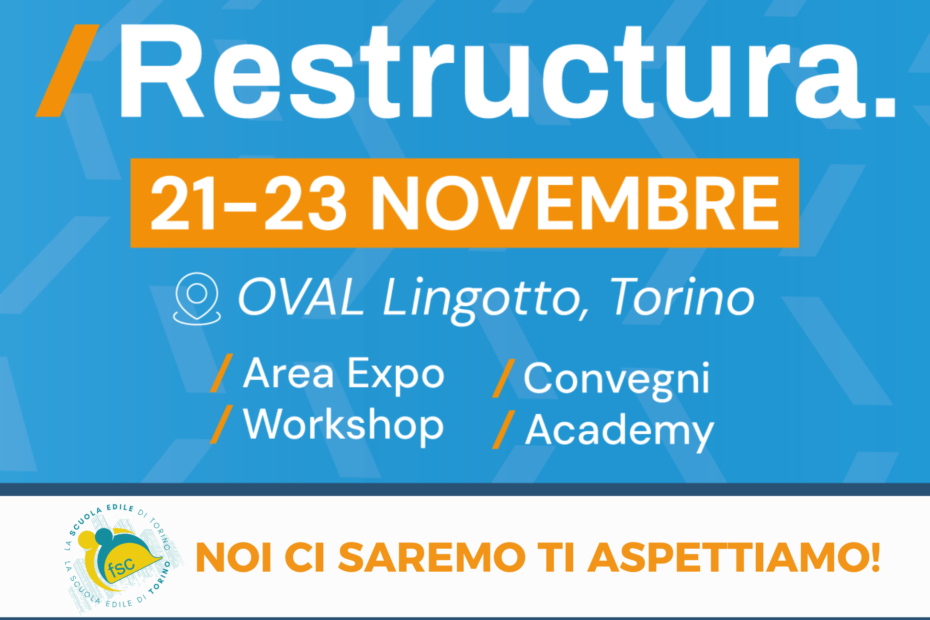 EVENTI Restructura 2024 Torino, Oval Lingotto Fiere 21-23 Novembre Restructura è il salone leader del Nord-Ovest rivolto a professionisti del settore su riqualificazione, recupero e ristrutturazione edilizia. Arrivato alla sua 36° edizione, rimane un… Leggi tutto »FSC, Restructura Torino,