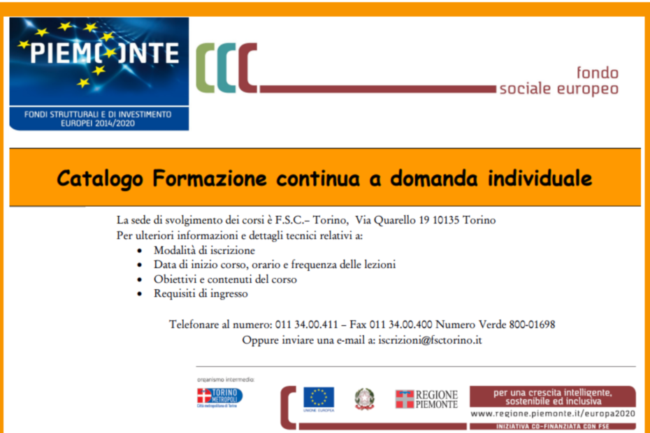 BANDI TERMINATI CATALOGO FORMAZIONE CONTINUA: ANNI 2020-2021 SCARICA LA LOCANDINA PERIODO DI RIFERIMENTO DELLO SPORTELLO: ANNI 2020-2021 Per info e iscrizioni 0113400473 – 0113400219… Leggi tutto »Catalogo Formazione Continua: