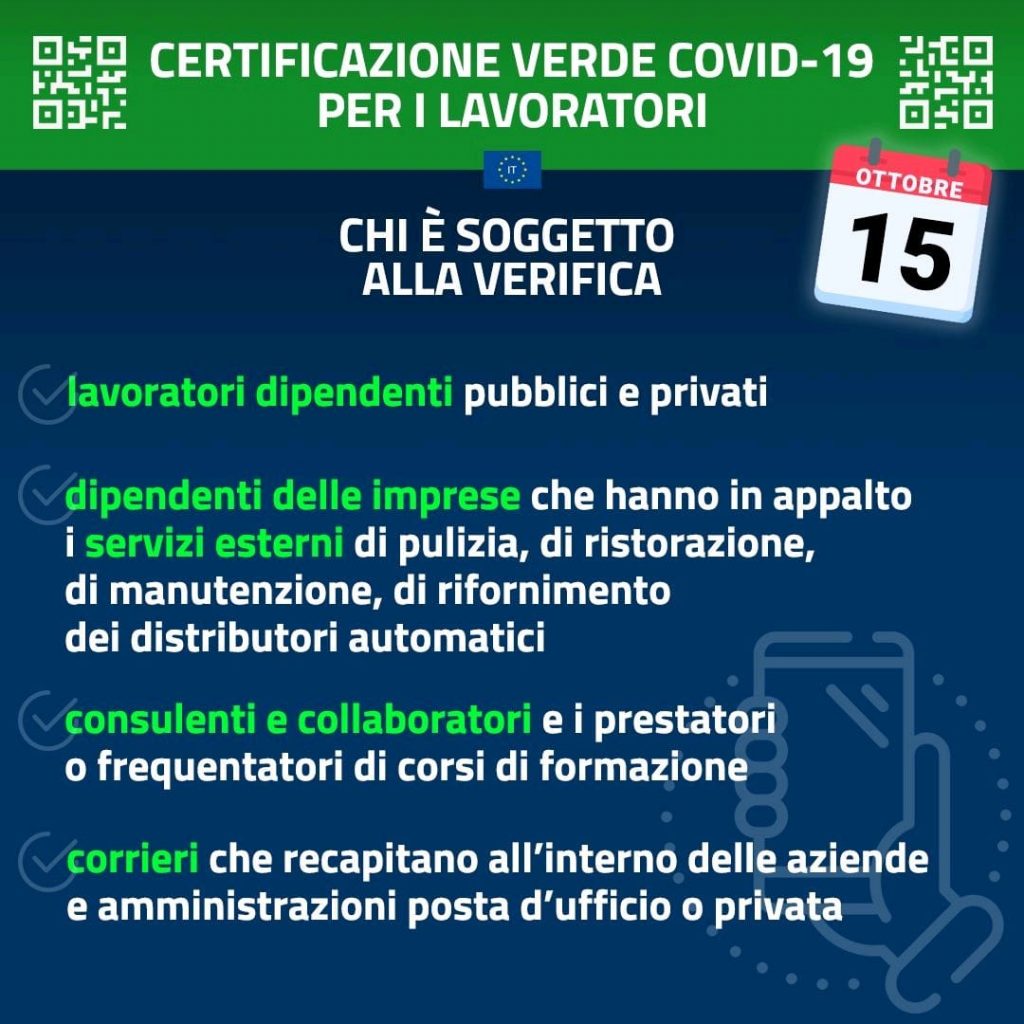 Certificazione Verde COVID-19 – Chi è soggetto alla verifica?